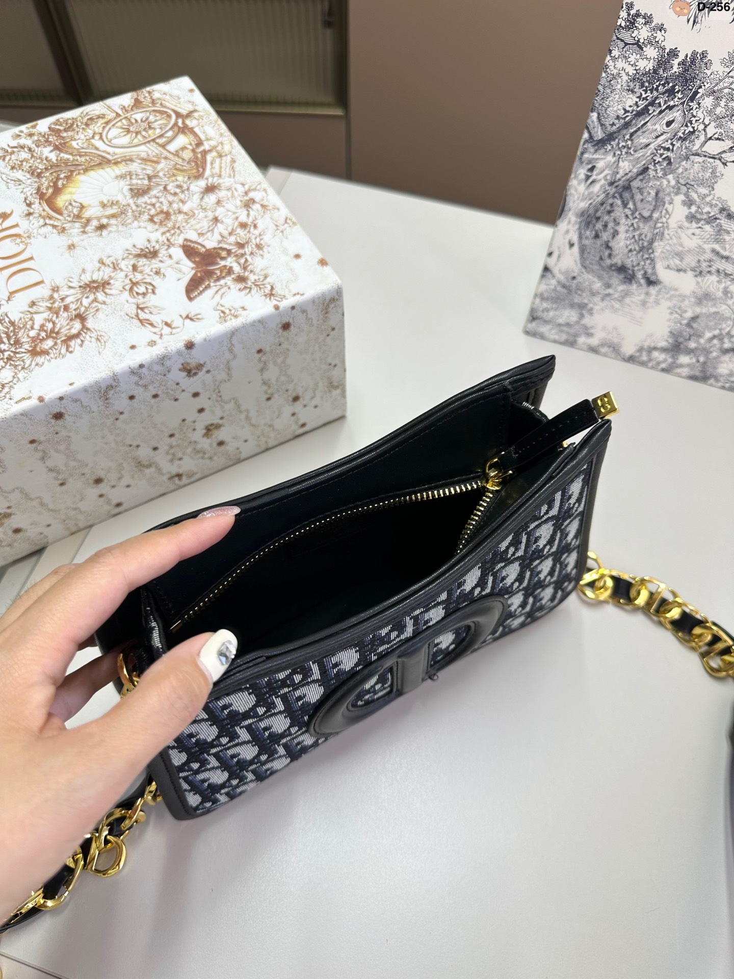 マリアグラツィアキウリによる2023年冬の新作 レトロな魅力を放つ「CD Signature (CD シグネチャー)」ホーボー ミニバッグ。ブルーの「ディオール オブリーク」ジャカードを使用し エンボス加工のCDシグネチャーをフロントにあしらってメゾンのサヴォワールフェールを表現しました。レザーを組み合わせたチェーンを備えたエレガントなバッグは ショルダーバッグとしてお使いいただけます。