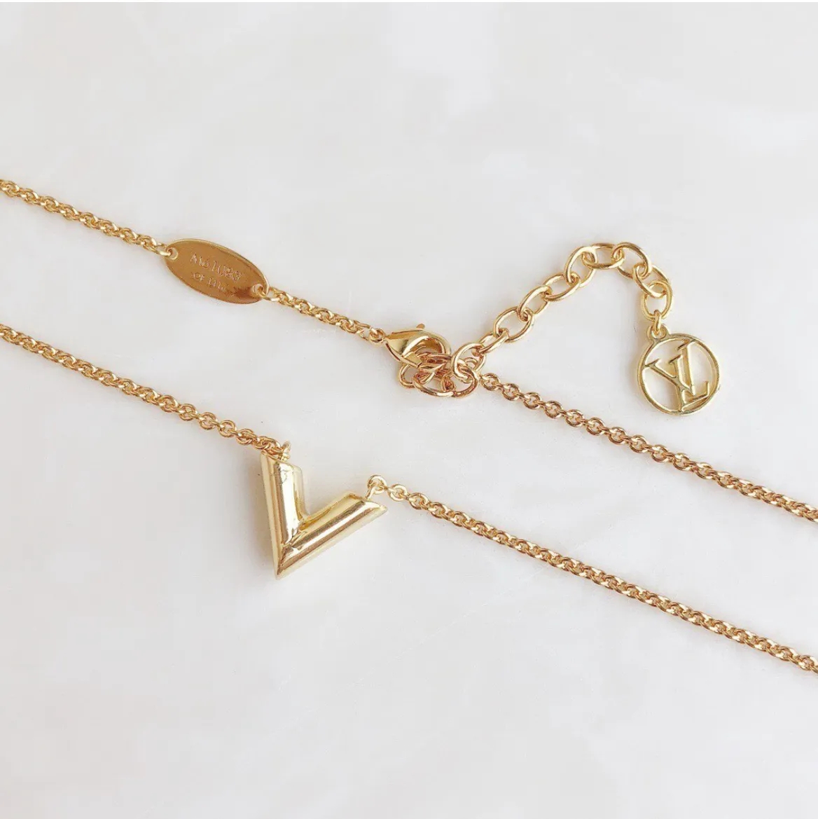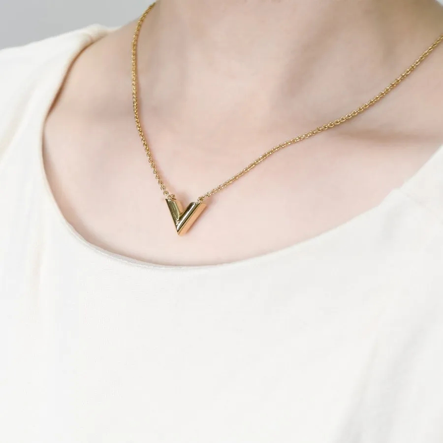 ワンポイントのVトップにチェーン部分にルイヴィトンのロゴプレートがあしらわれているエセンシャルVネックレスは様々なシーンで活躍すること間違いありません。