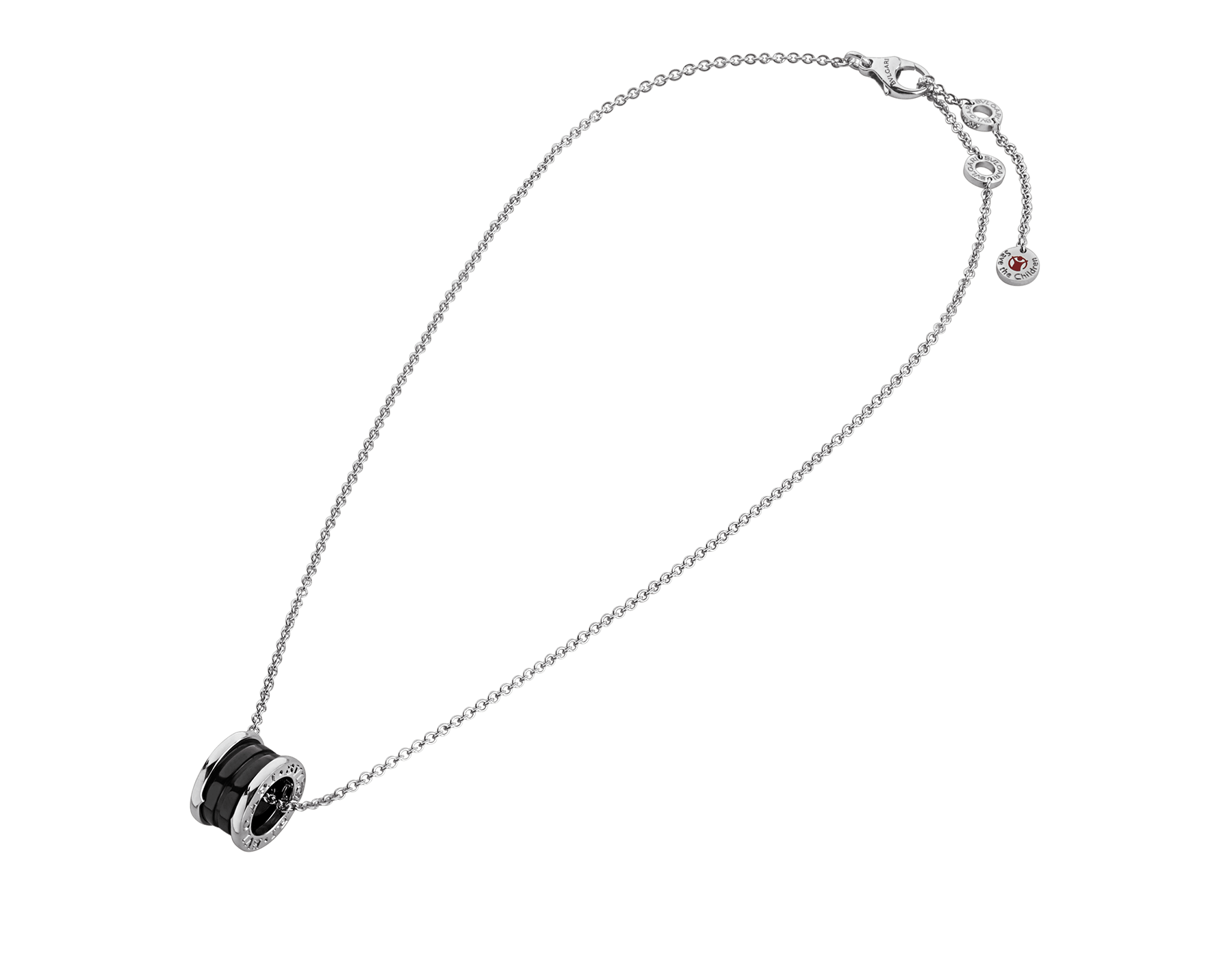 ブルガリのセーブ・ザ・チルドレンとの継続的なパートナーシップを称えるネックレス。ブラックセラミックをあしらったスターリングシルバー製。ビー・ゼロワン ジュエリーコレクションからインスピレーションを引き出し、このチャリティ活動のロゴがエングレーヴィングされています。ブルガリのセーブ・ザ・チルドレン ジュエリーコレクションは1点販売されるごとに、10,800円が、世界で最も弱い立場にある子どもたちや若者に支援や機会を提供するファンドプログラムに寄附されます。 セーブ・ザ・チルドレン ペンダント。ブラックセラミックをあしらったスターリングシルバー製ペンダントトップとスターリングシルバー製チェーン。(チェーンの長さは38ー45 cmの間で調節できますが、延長する加工は恐縮ですが承っておりません。)