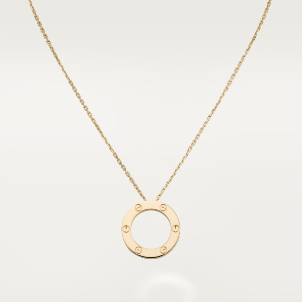 Love ネックレス、イエローゴールド750/1000。内径:16mm。チェーンの長さ:420mm。