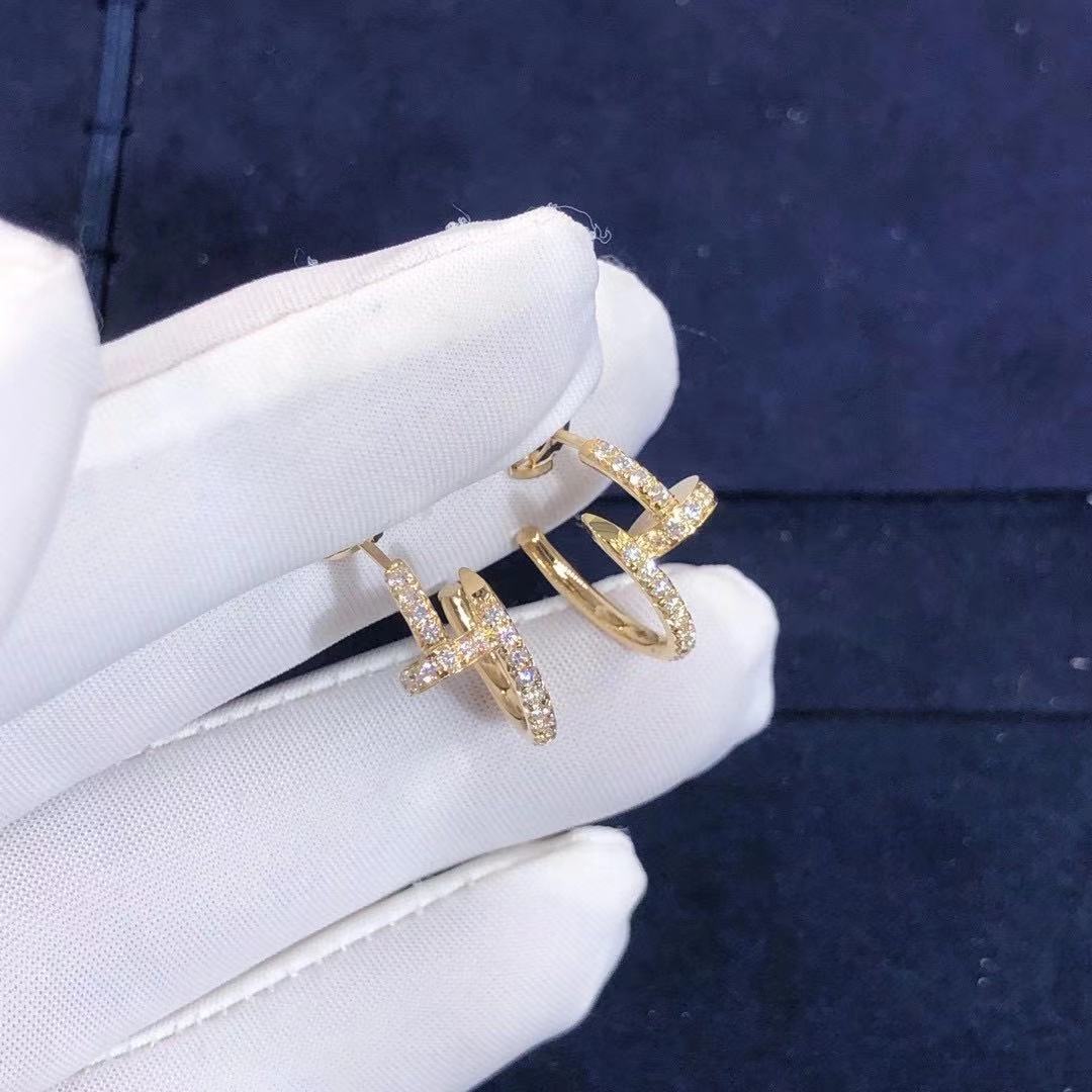 ジュスト アン クル イヤリング、イエローゴールド750/1000、ブリリアントカット ダイヤモンド各36個(計0.51ct)。