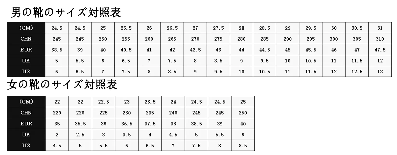 22.5cm(36) ,23.5cm(37.5) ,24.0cm(38) ,24.5cm(39) ,25.0cm(40) ,26.0cm(41) ,26.5cm(42) ,27.5cm(43) ,28.0cm(44) ,29.0cm(45) |