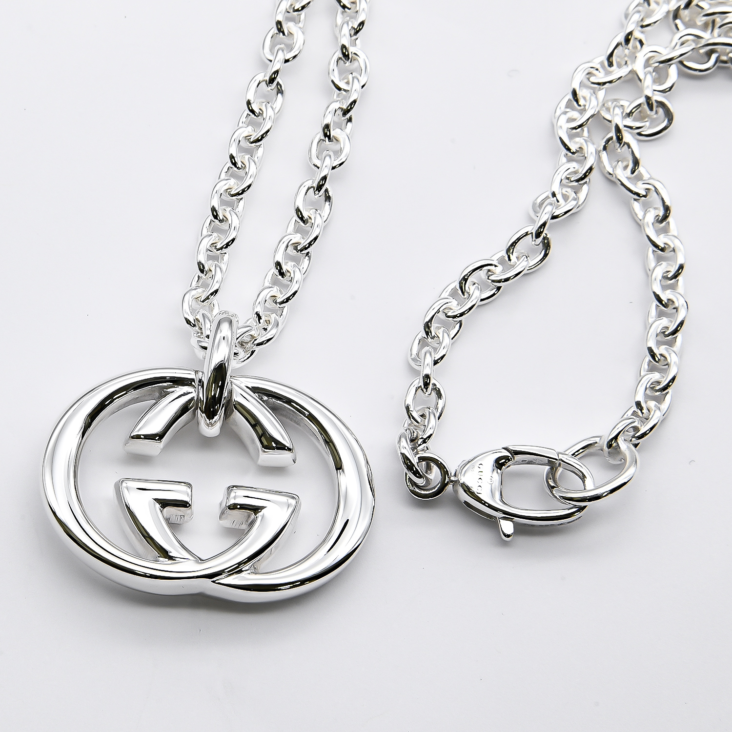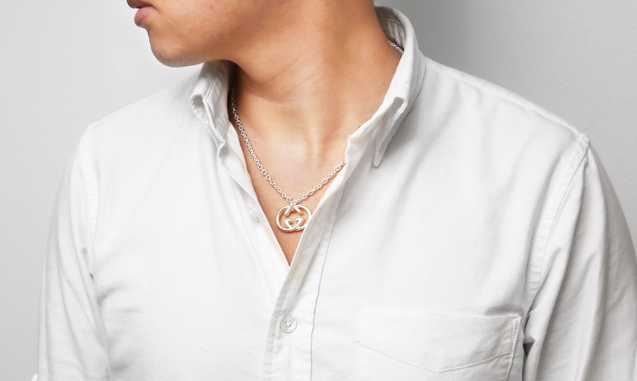 【高品質】【国内発送/直営店】ネックレス メンズ Gロゴモチーフ シルバーブリット ペンダント シルバー