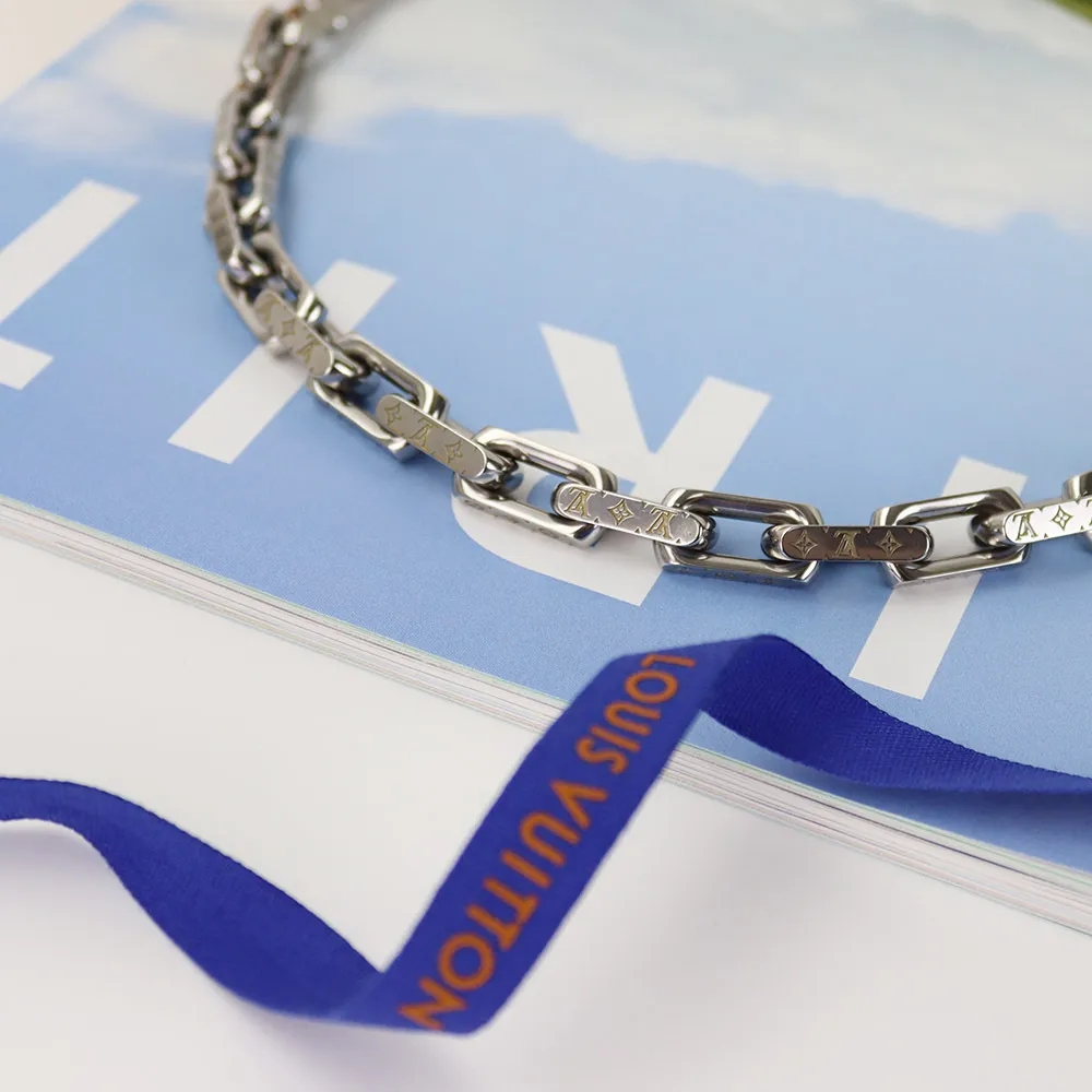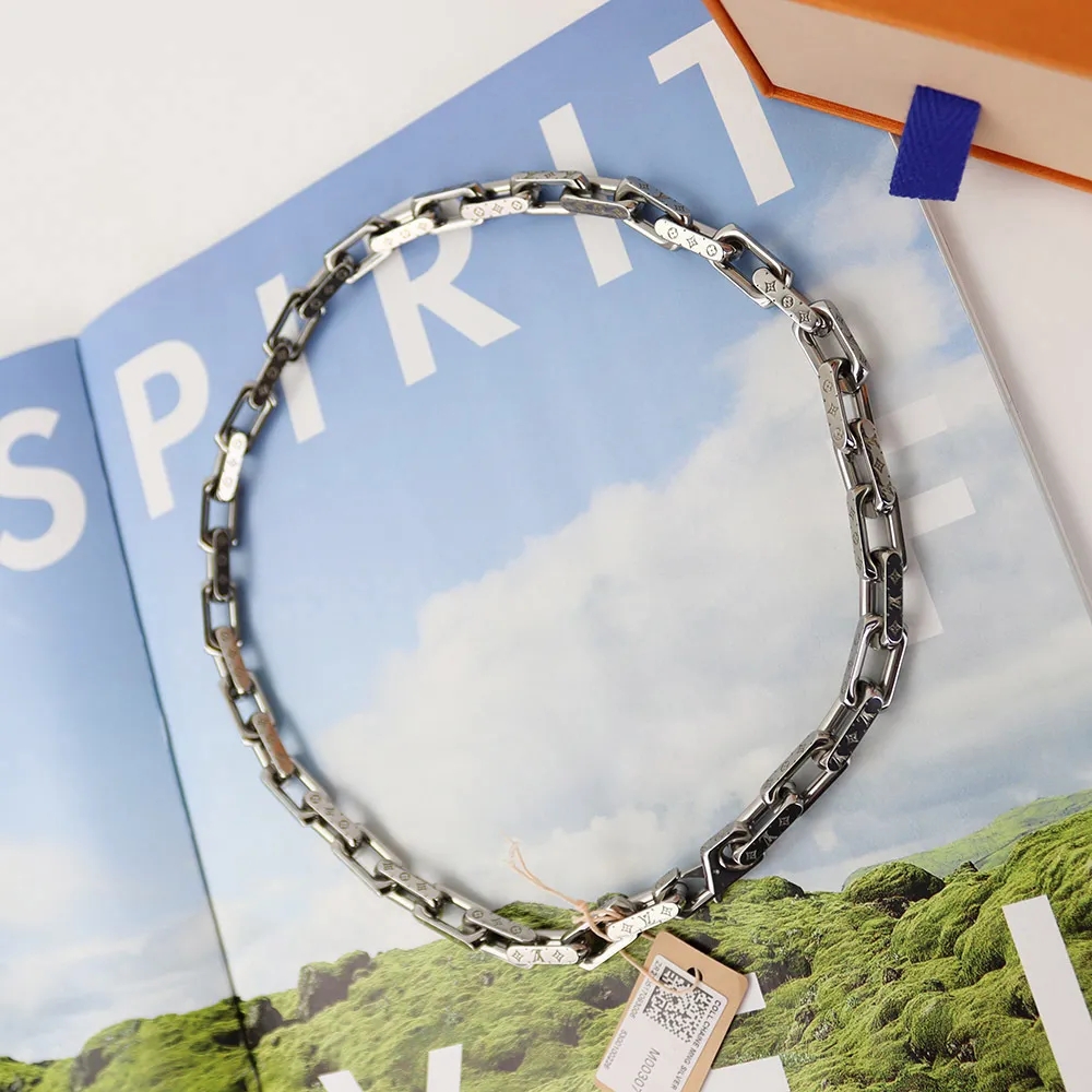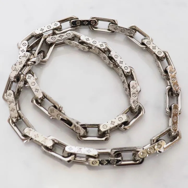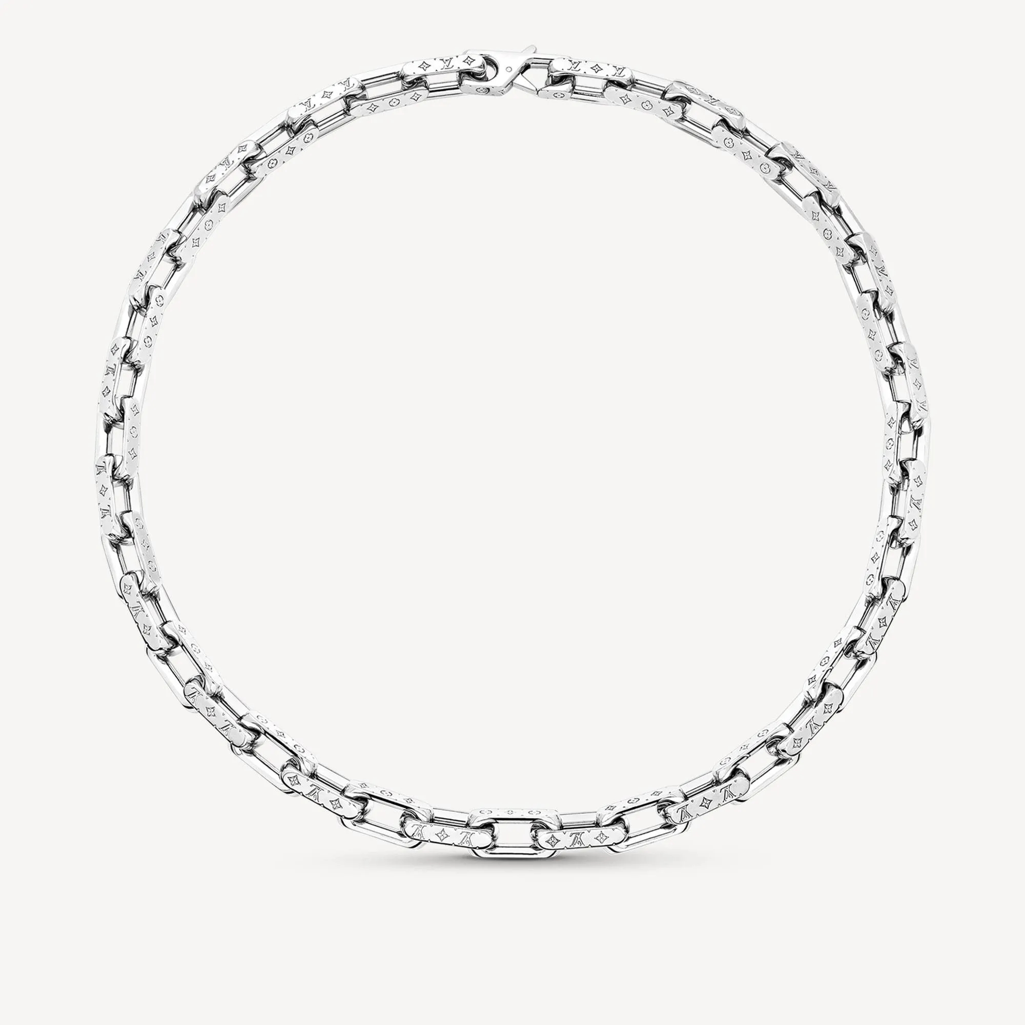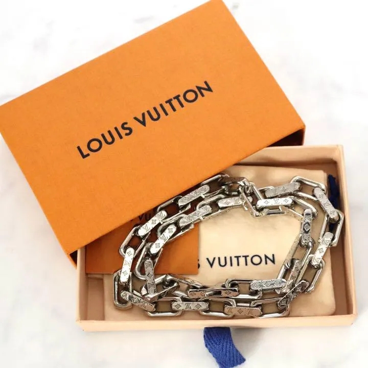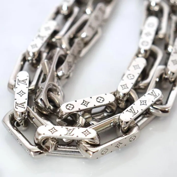 ●ルイヴィトンを象徴するシグネチャー・モノグラムが精巧に刻印された、アイコニックなコリエ・チェーンネックレス