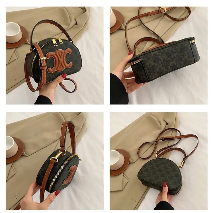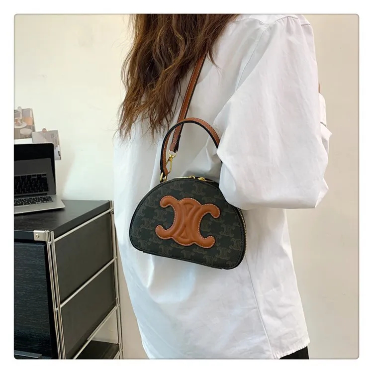 【高品質】【CELINE】キュイル トリオンフ ハーフムーンケース / タン