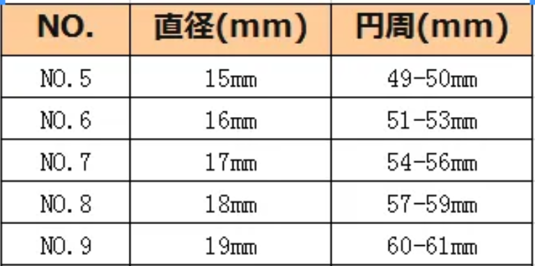 15mm—NO.5 ,16mm—NO.6 ,17mm—NO.7 ,18mm—NO.8 ,19mm—NO.9 |