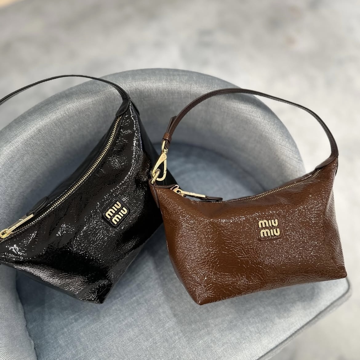Miu Miu(ミュウミュウ)の「ナプラックパテントレザー ポーチ」をご紹介いたします♪