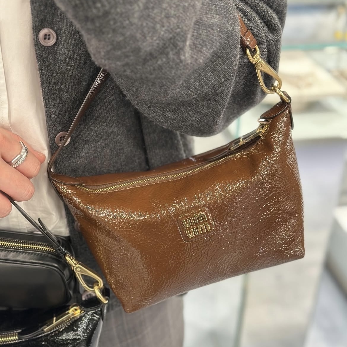 【2WAY】ミュウミュウ ポーチ ショルダーバッグ パテントレザー