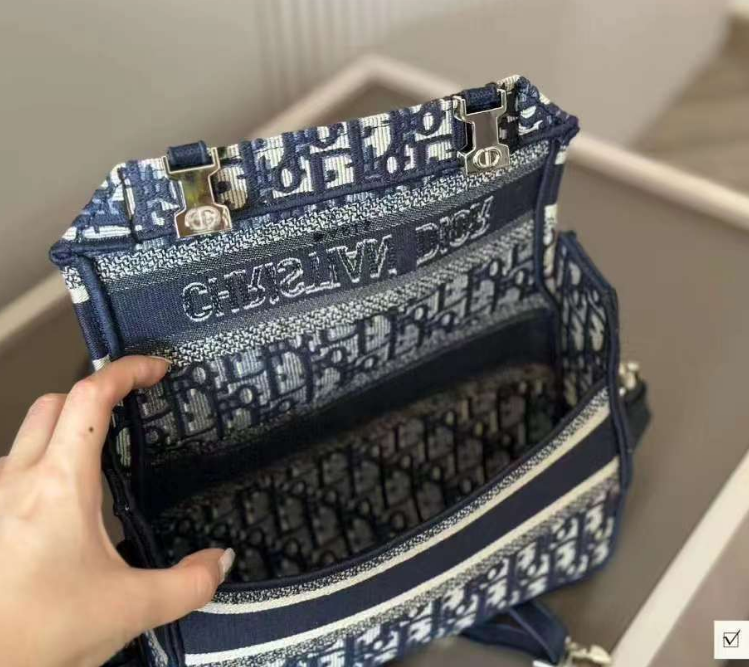 ブルーの「ディオール オブリーク」モチーフを全面に刺繍し フラップにCHRISTIAN DIORシグネチャーとスポーツウェア風のCDバックルをあしらいました。