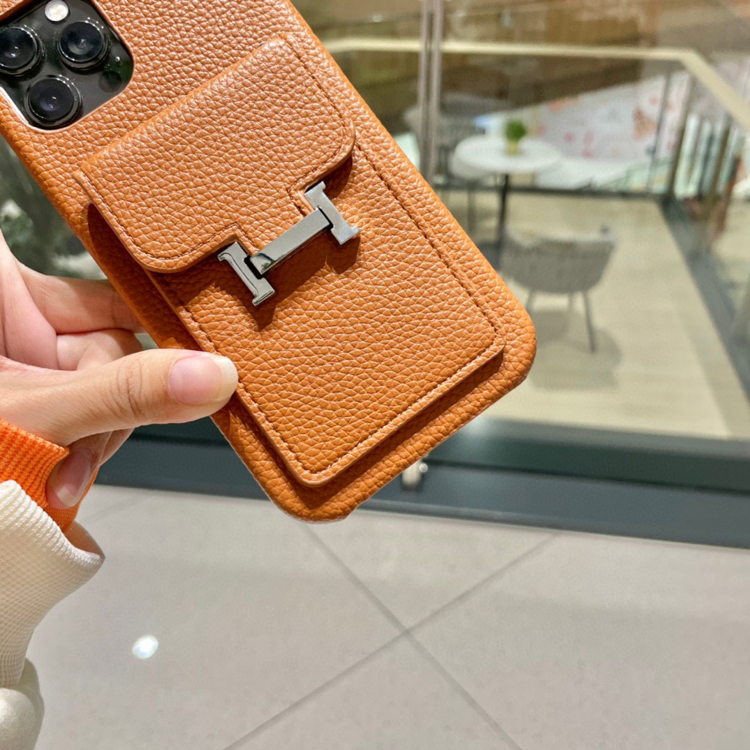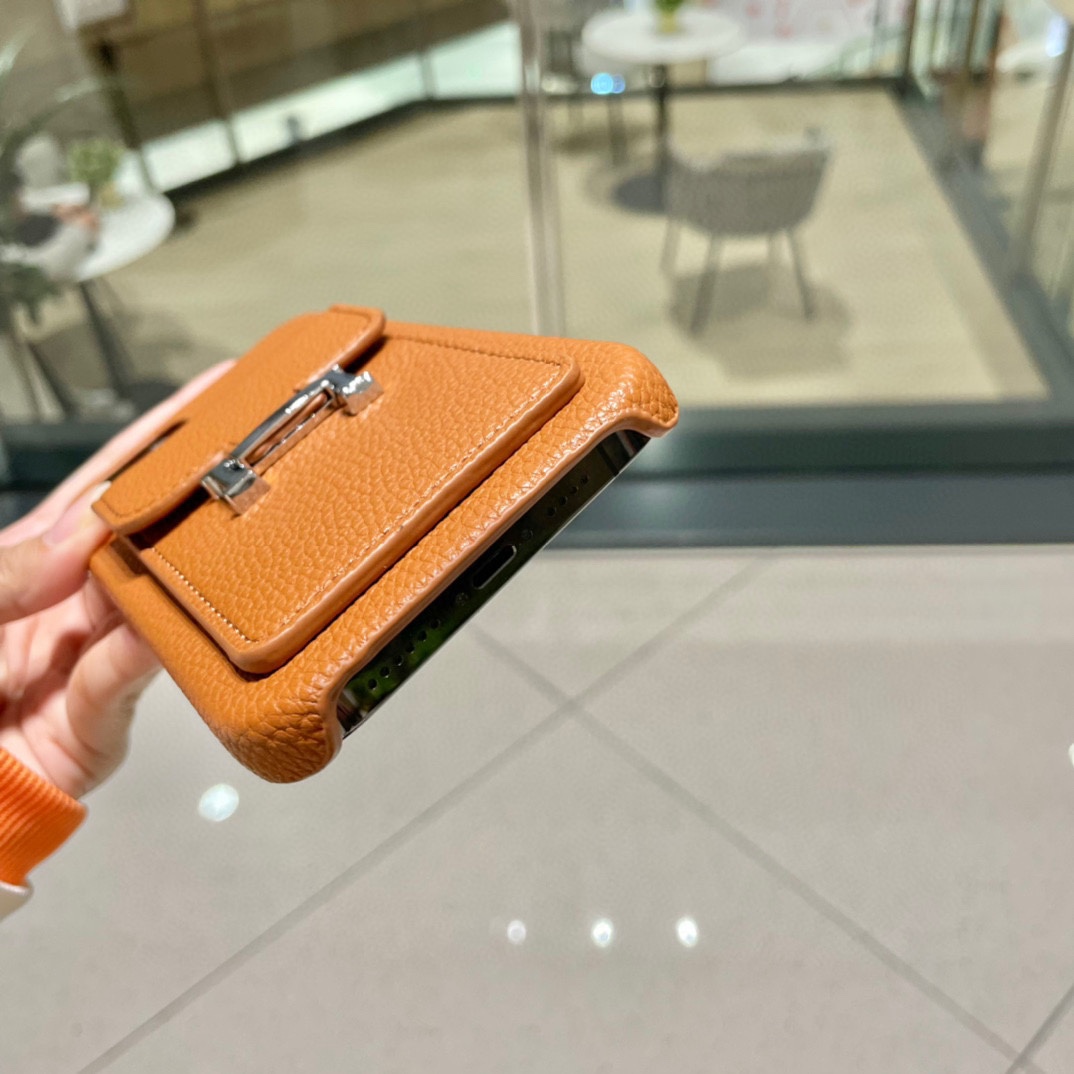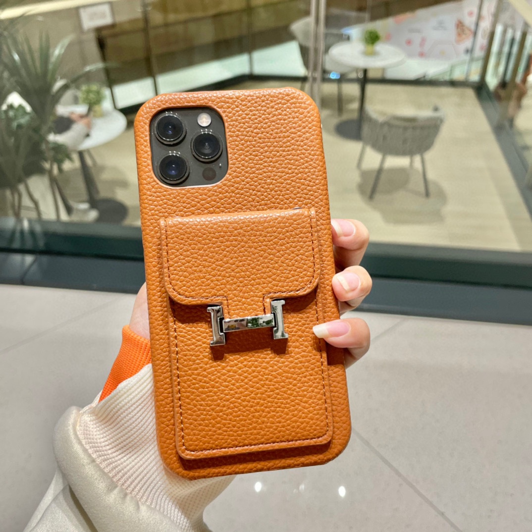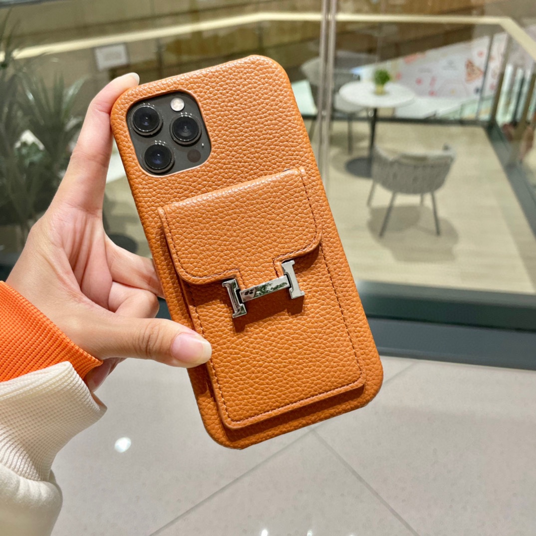 【HERMES】エルメス オレンジ きんぞく 電話ケース zm