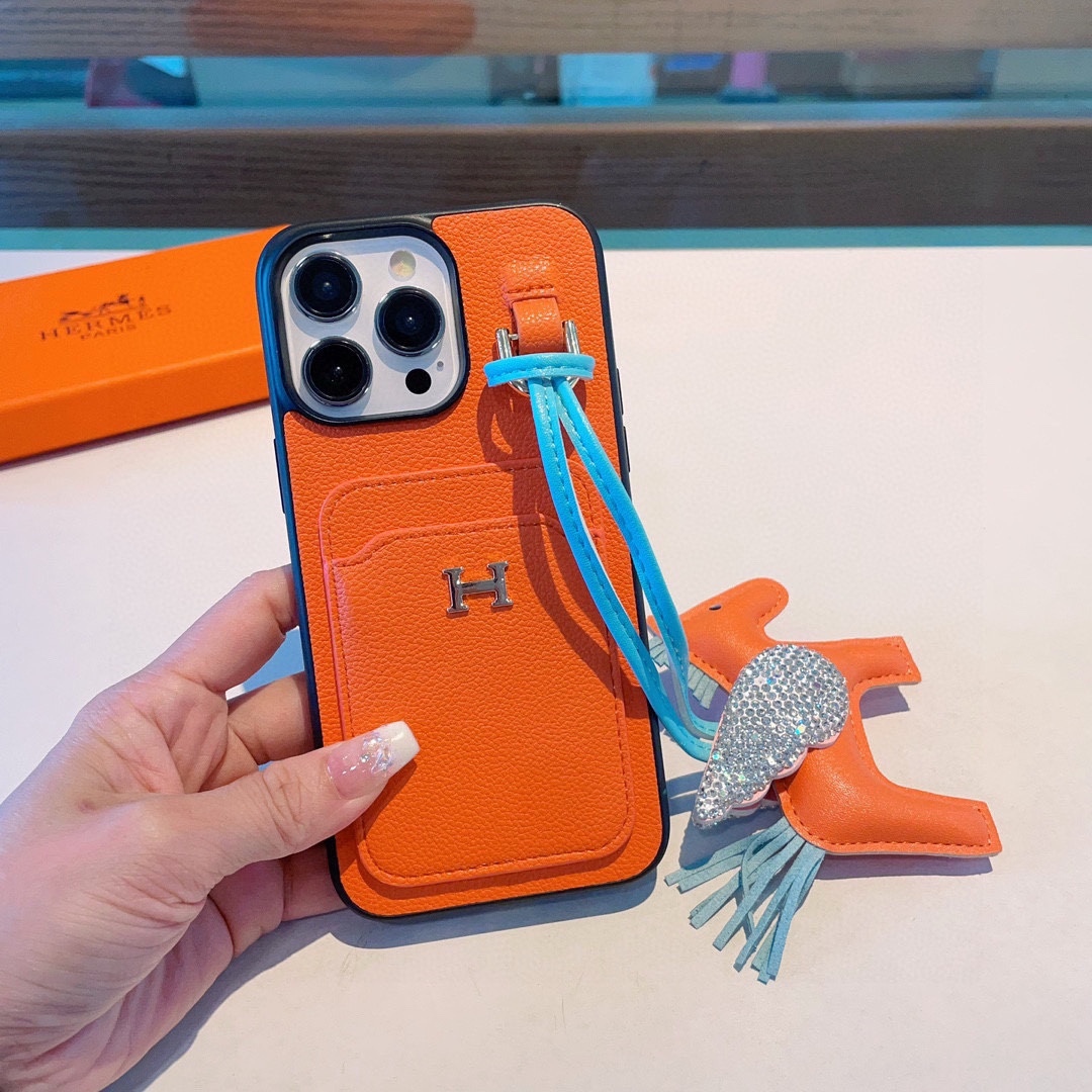 【HERMES】エルメス オレンジ 電話ケース zm