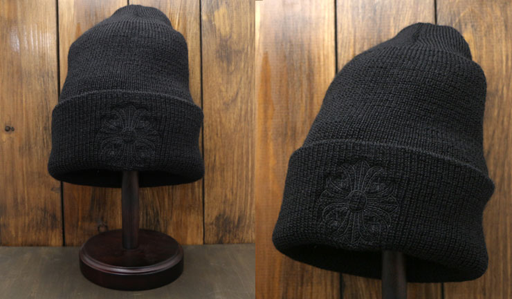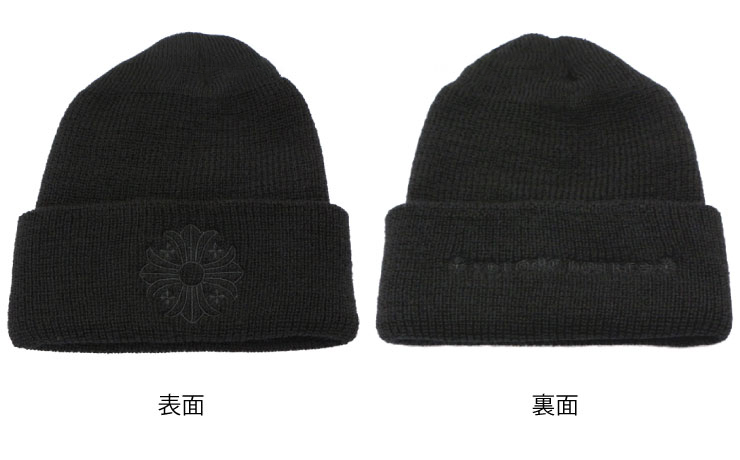CHプラスのモチーフと、ブランド名「CHROME HEARTS」の文字は、ニット帽と同じ黒で描かれており、主張しすぎないデザインに仕上げられています。