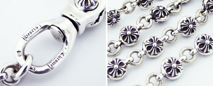 クロムハーツウォレットの必需品!従来の、クロムハーツスタイルを好む方に人気のウォレットチェーン。 #2サイズのクロスボールを連ねてチェーン状にし、2つのクリップをつけることで、脱着し易くしたアイテム。