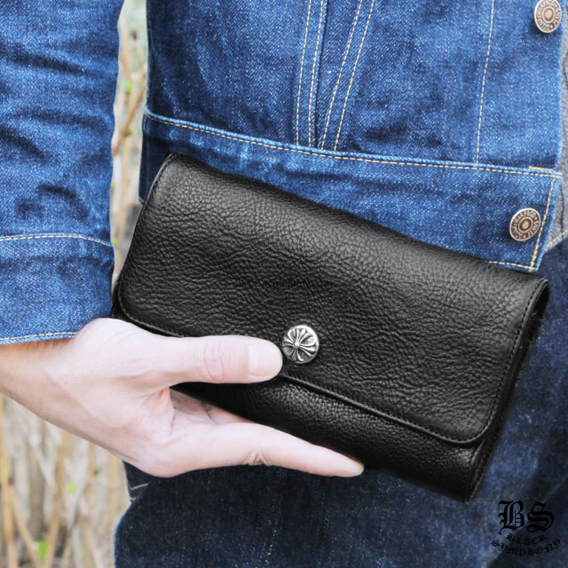 クロムハーツ ジュディウォレット クロスボタン ブラックヘビーレザー財布