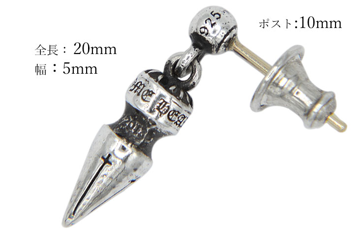 クロムハーツピアスの中でも揺れ動くドロップ系ピアスからスパイク型のデザインが登場いたしました。シャープで個性的なデザインが一際目を引きます。 先端のデザインにはRSクロスが4方向にあり、燻し加工された中央部分には製造年月とシルバー925の刻印、上部にはCHROMEHEARTSとCHプラス、丸カンとつないでいる部分はクロスの形にデザインされており、小さいアイテムなのに様々な所にデザインがあり、クロムハーツならではの卓越したクラフトマンシップが光るピアスです。 またドロップタイプのピアスですので揺れ動き、どの角度から見ても存在感を放ちます。動きに合わせてス光が反射し、ダイナミックで魅力的な印象を与えます。 装着するだけで視線を集めるこのピアスは、ファッションコーディネートのアクセントとして最適です。細かなディテールが揺れるたびに煌めき、その独特の輝きが一層引き立ちます。クロムハーツのブランドらしいエッジの効いたデザインが、個性とスタイルを際立たせ、魅惑的でエレガントな雰囲気を醸し出してくれる逸品です。