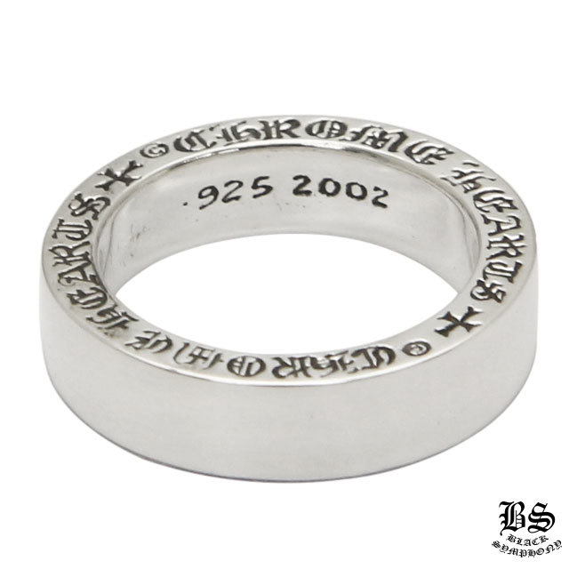 表面には何もデザインが施されていない、シンプルなクロムハーツリング、「スペーサーリングプレーン6mm」です。 幅が広めに作られており、その幅は6mm。