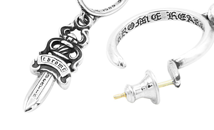 クロムハーツの人気チャーム、「ダガーチャーム#5」をピアスにデザインした存在感抜群のフープタイプのアイテムです。