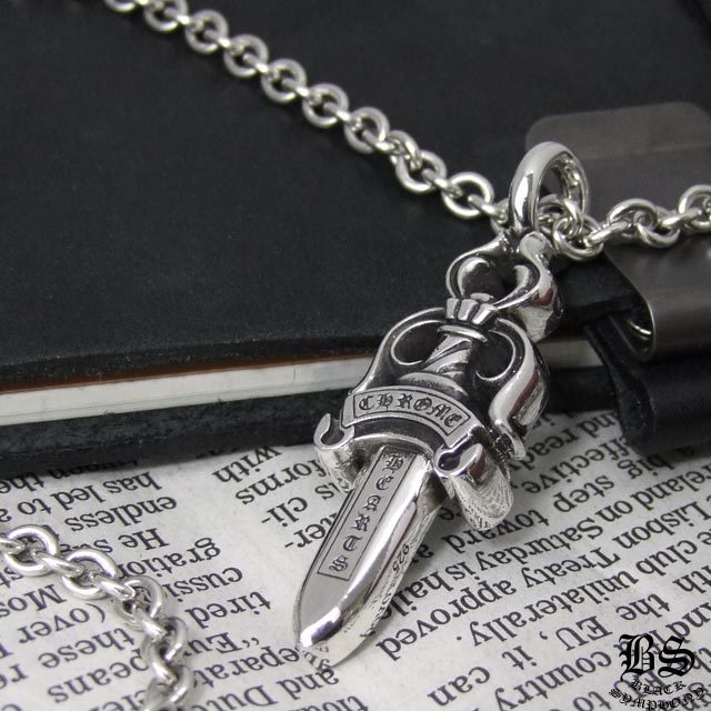 クロムハーツのペンダントシリーズの中でも、クロスに並ぶ歴史の長い、ダガーモチーフのペンダントを、よりグレードアップし、バチカン(チェーンを通す穴)を作ったアイテム。