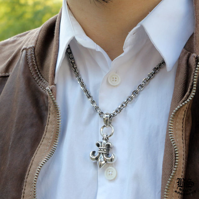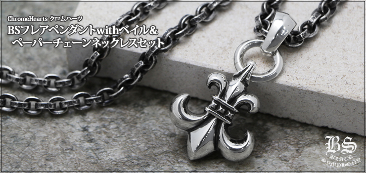 クロムハーツで不動の人気を誇るペーパーチェーンネックレスのペンダントトップにBSフレアペンダントwithベイルを当店オリジナルのセットにしたのが今商品「BSフレアペンダントwithベイル&ペーパーチェーンネックレスセット」です。