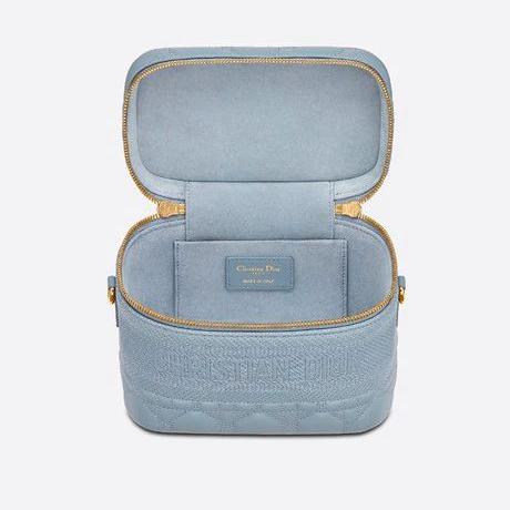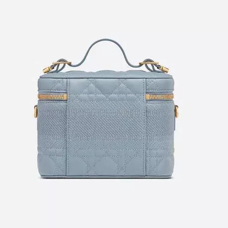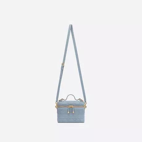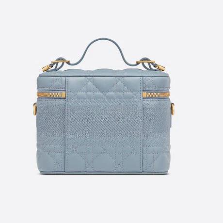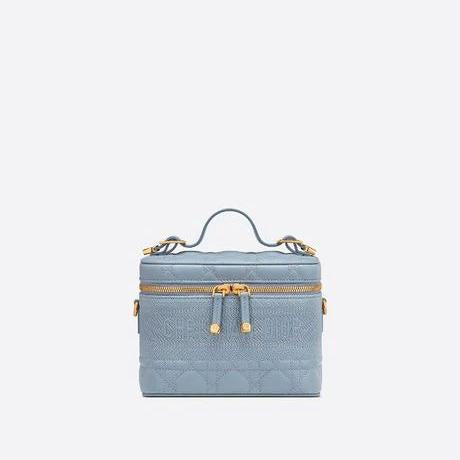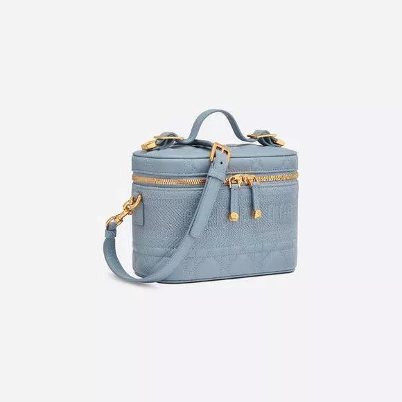 「DiorTravel (ディオール トラベル)」ヴァニティが、ミニサイズで登場。しなやかなクラウドブルーのラムスキンを使用し、「カナージュ」ステッチとエンボス加工の“Christian Dior”シグネチャー入りバンドをあしらいました。ジップクロージャーで開閉するメインコンパートメントには、スマートフォンやウォレット、AirPods用ケース、ノートブックなどを収納できます。普段使いに最適なこのヴァニティは、トップハンドルを使った手提げスタイルとしても、取り外し可能なショルダーストラップでショルダーやクロスボディバッグとしてもお使いいただけます。