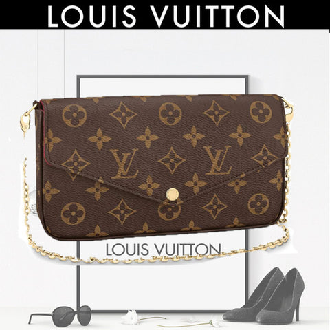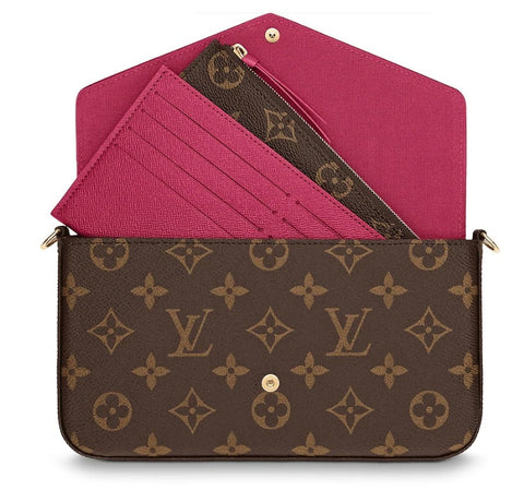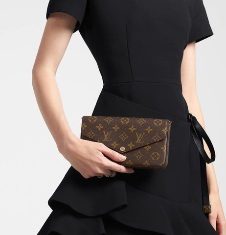 取り外し可能な2つの内ポケットを備えた、モノグラム・キャンバスのエレガントな「ポシェット・フェリーチェ」。