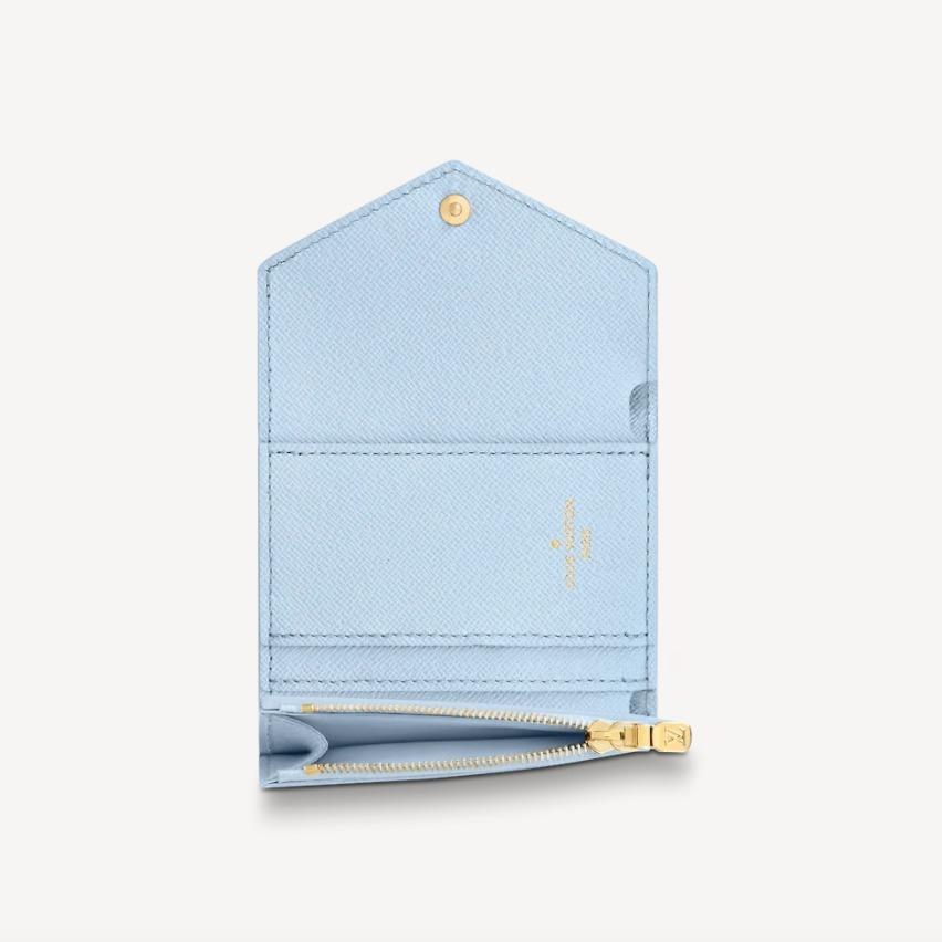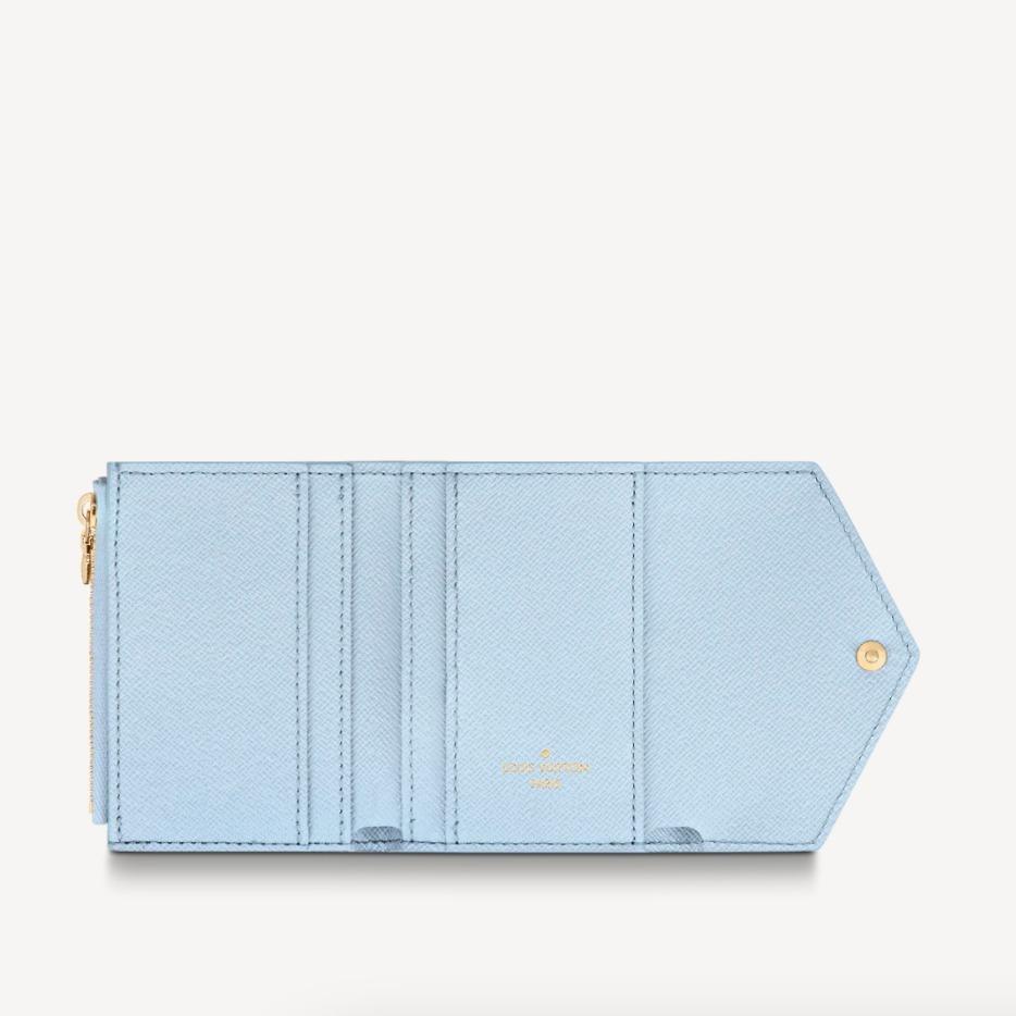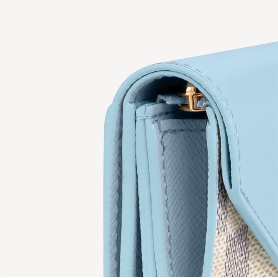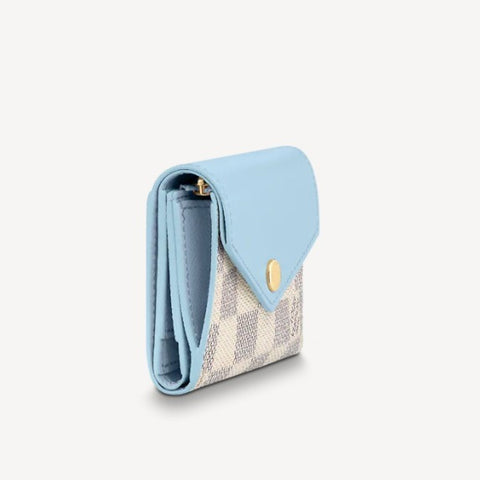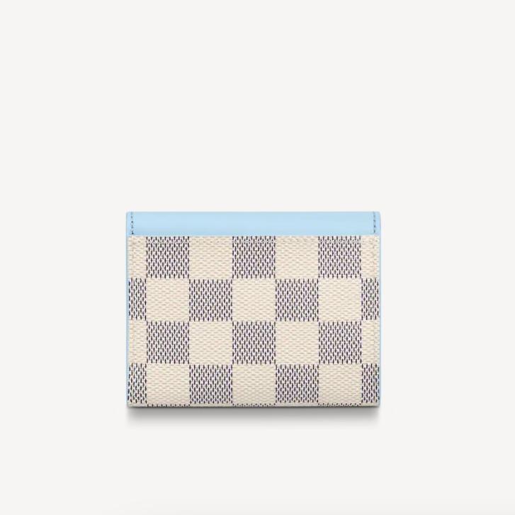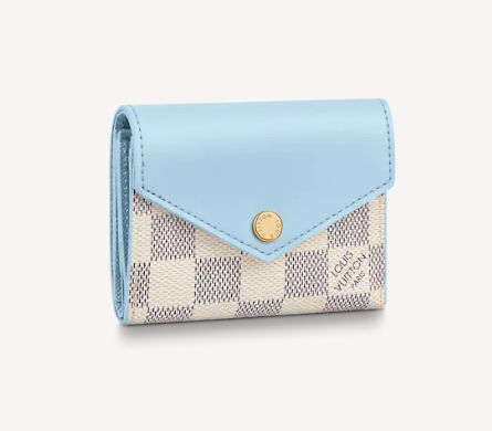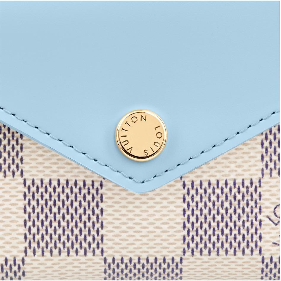 このゾエウォレットは、ダミエアズールキャンバスとシルキーレザーのパステルトーンでレンダリングされ、ルイヴィトンの刻印プレスバックルで封筒のような構成で開かれます。 コンパクトなサイズで、ポケットやハンドバッグ、クラッチなどに簡単に収納でき、コインや紙幣、クレジットカードも収納できます。