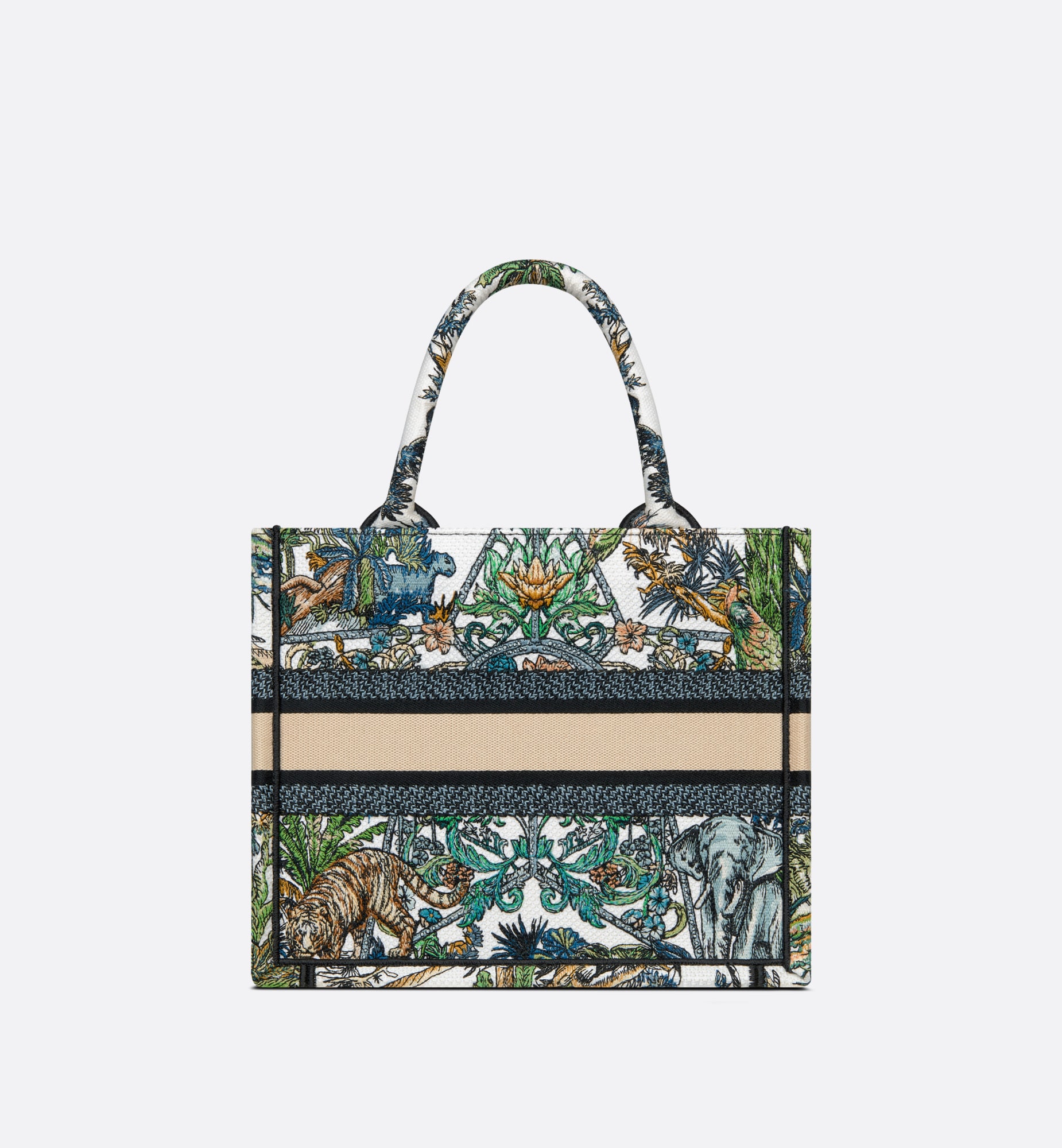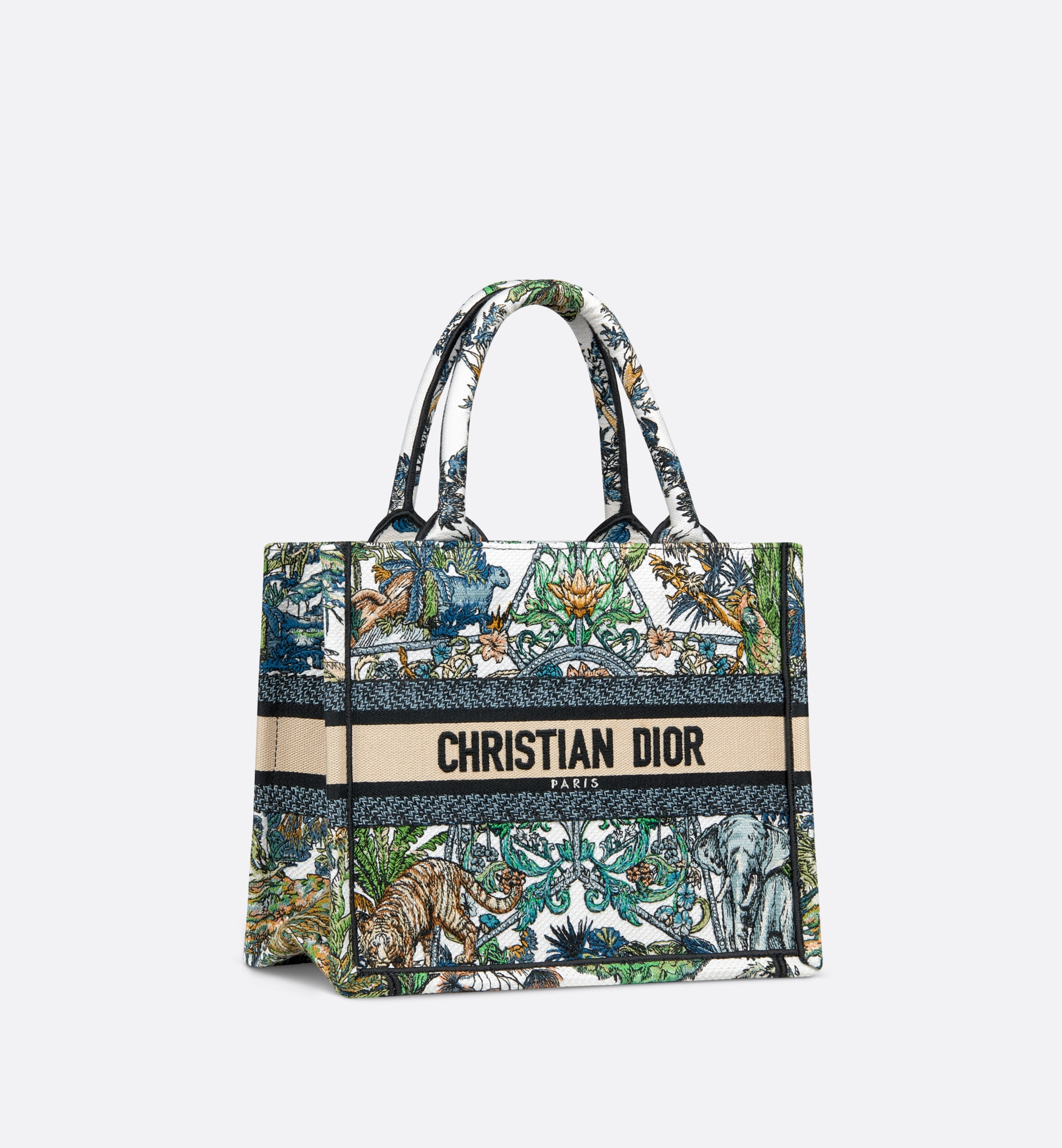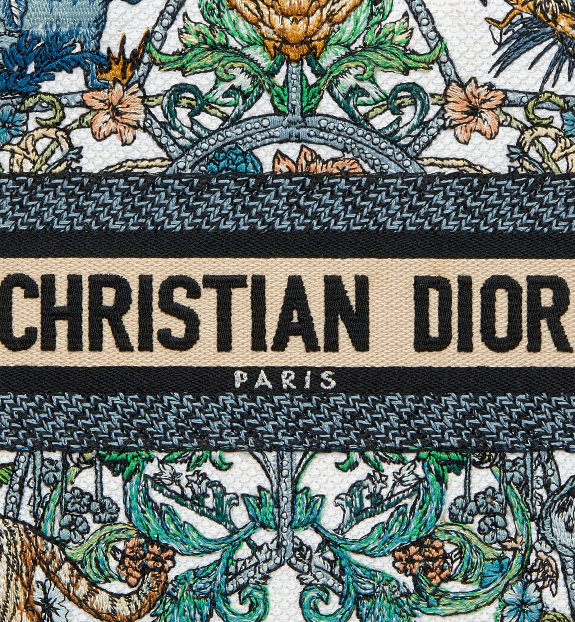 マリアグラツィアキウリが発表したオリジナル スタイルの「ディオール ブックトート」は、ディオールの美意識を語る上で今や不可欠なスタイル。毎日必要なものをすべて収納できるようデザインし、インドの動植物を調和の取れたスタイルでスターとともに描いた、ピエトロルッフォによるホワイト系マルチカラーの「Étoile de Voyage (エトワール ドゥ ヴォヤージュ)」モチーフを全面に刺繍しました。フロントにChristian Dior Parisシグネチャーをあしらい、メゾンならではのサヴォワールフェールを体現したミディアムトートは、ハンドバッグまたはショルダーバッグとしてお使いいただけます。
