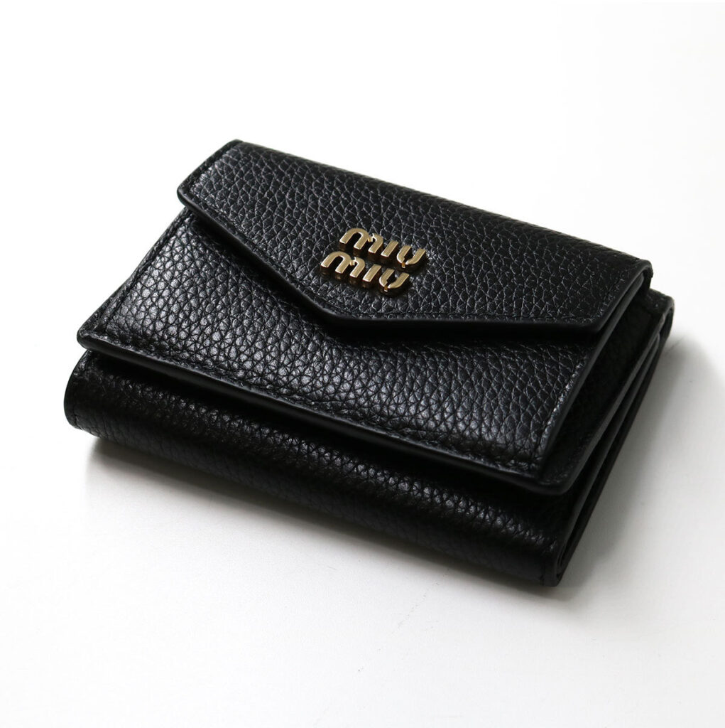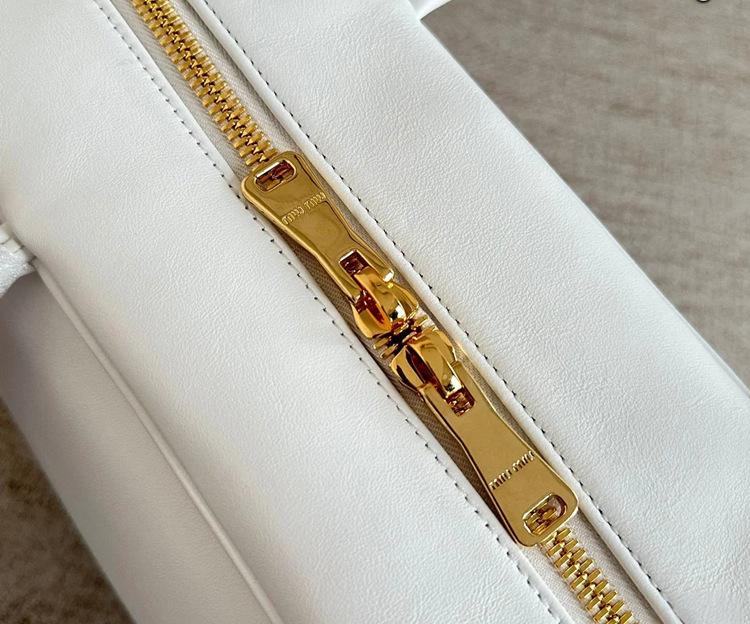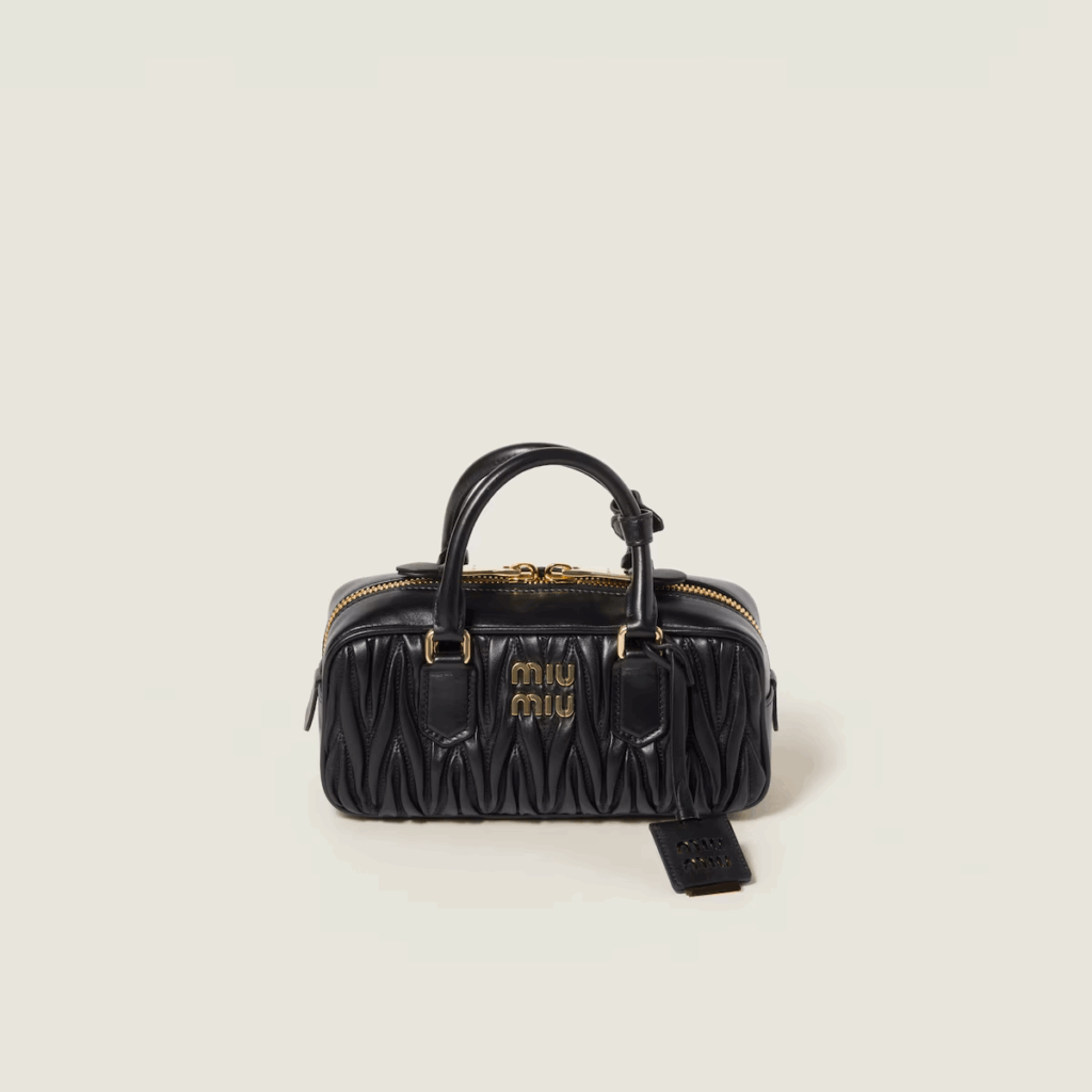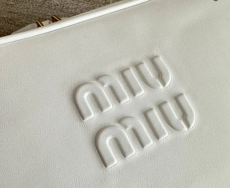 エンボス加工のMIU MIU ロゴがアイコニックなアクセントを添えています。
