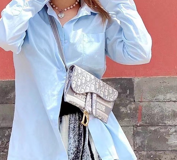 アシンメトリーデザインのフラップやゴールドトーンのあぶみを象ったD型マグネットクラスプなど 「サドル」ラインのアイコニックなコードを踏襲したスリムポーチ。グレーの「ディオール オブリーク」の刺繍を施しました。取り外し可能なレザーストラップで クロスボディバッグとしてはもちろん ベルトポーチとしても使用することが可能。刺繍入りのストラップに付け替えれば よりパーソナルなルックを楽しむこともできます。