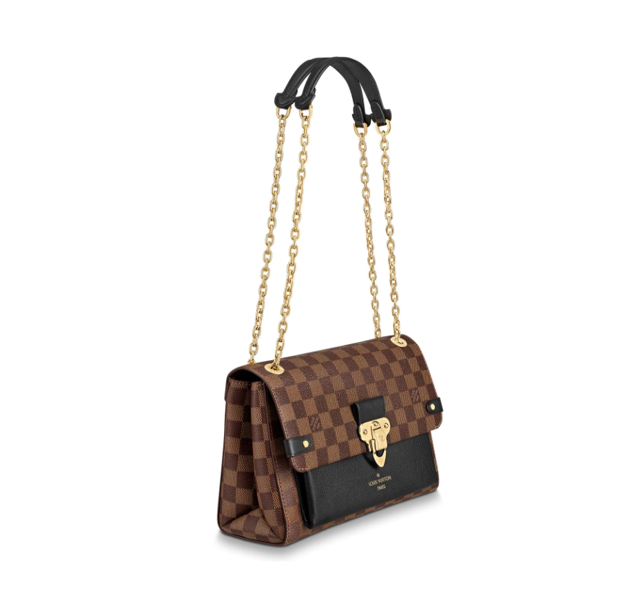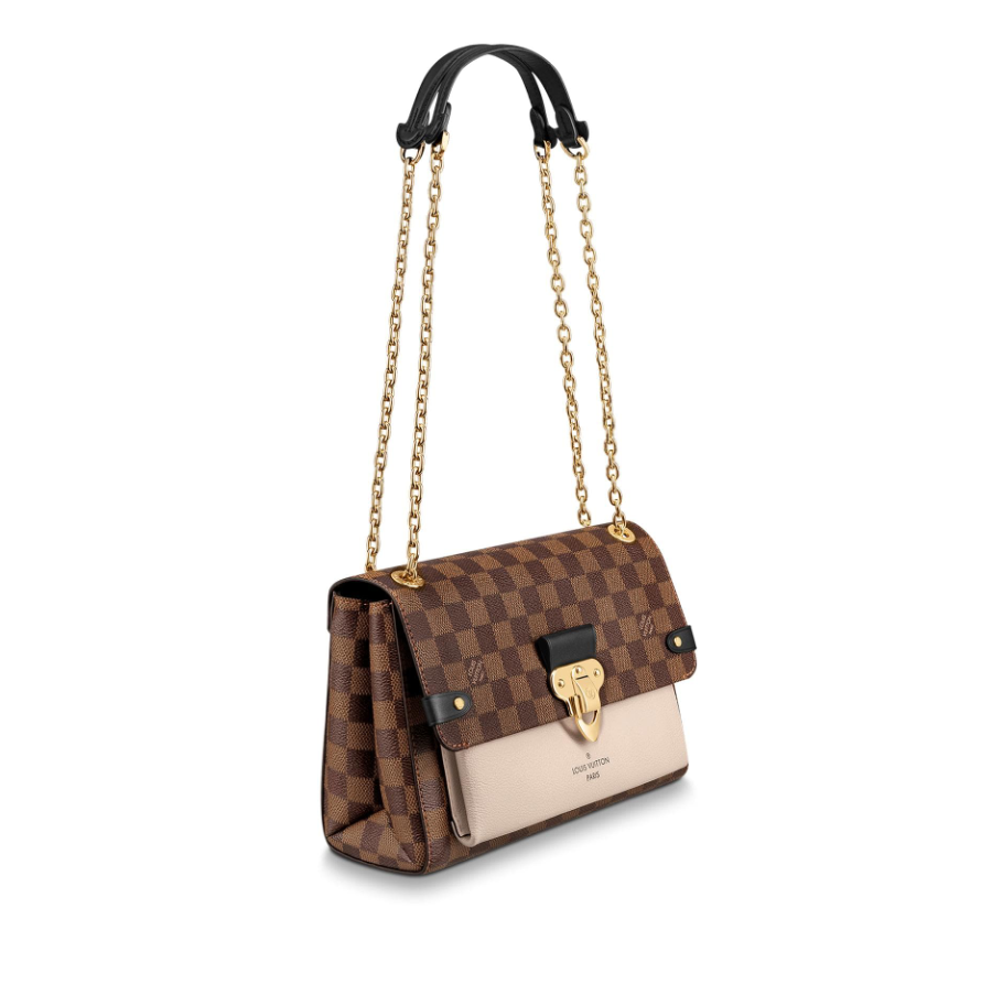 ダミエ・キャンバスと柔らかいカーフレザーを組み合わせて仕上げた「ヴァヴァン PM」。キャンバスとレザーのコントラストが美しいバランスを描きます。ゴールドカラーのロックは、ルイ・ヴィトンが誇る伝統的なトランクから着想を得たもの。スライド式のチェーンハンドルとレザーのショルダーパッド付きで、デイタイムからイブニングシーンまで快適に持ち運びできる、軽量のボディフレンドリーなバッグです。