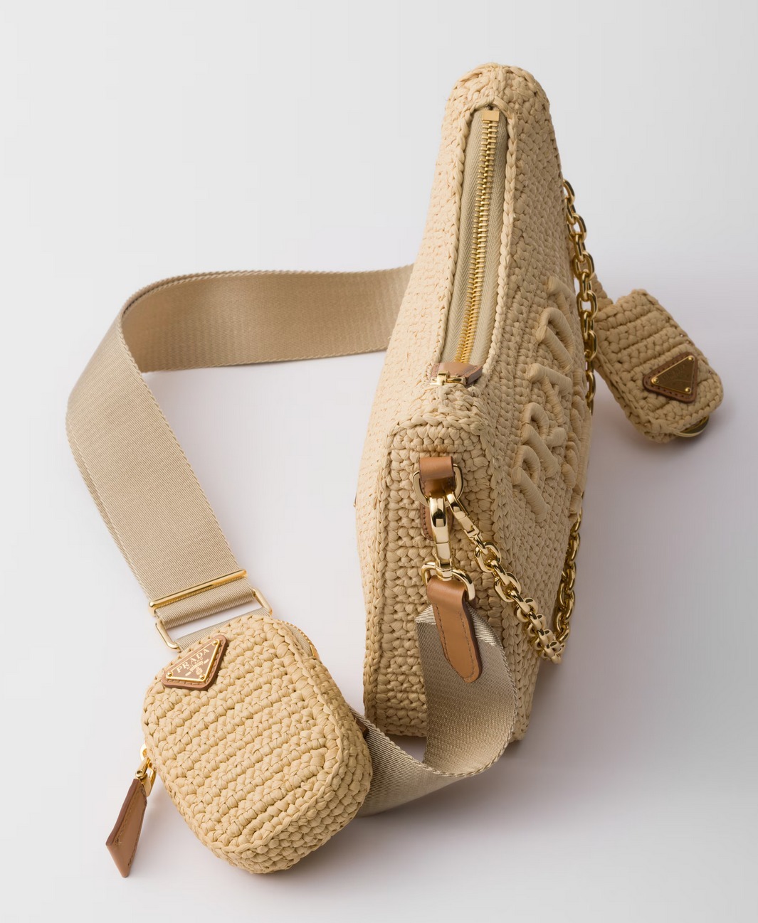 取り外し可能なファスナー付ラフィアポーチとRe-Edition キーリング