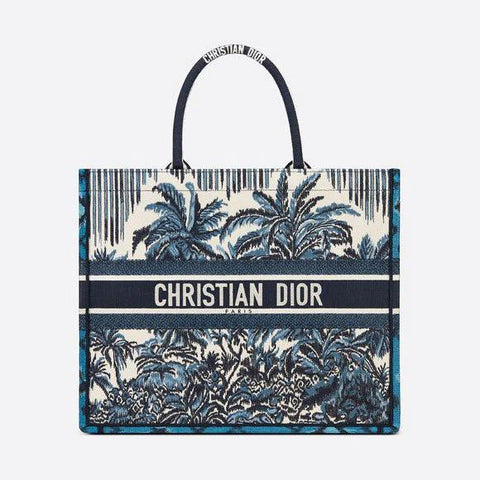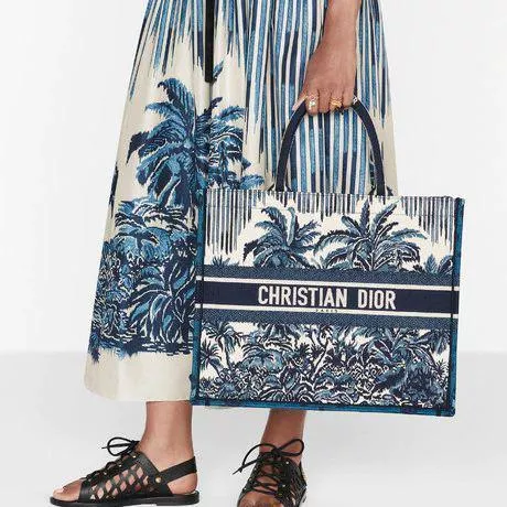 マリアグラツィアキウリが発表したオリジナル スタイルのディオール「ブックトート」は、ディオールの美意識を語る上で今や不可欠なスタイル。アイコニックな「トワル ドゥ ジュイ」をアップデートした、ブルーの「Dior Palms (ディオール パームズ)」モチーフの刺繍を全面に施し、毎日の必需品をまとめて持ち歩けるサイズ感に仕上げました。フロントに“Christian Dior”シグネチャー、両サイドにグラフィックモチーフをあしらい、モダンなコントラストを演出。メゾンのサヴォワールフェールを体現するキャリーオールです。