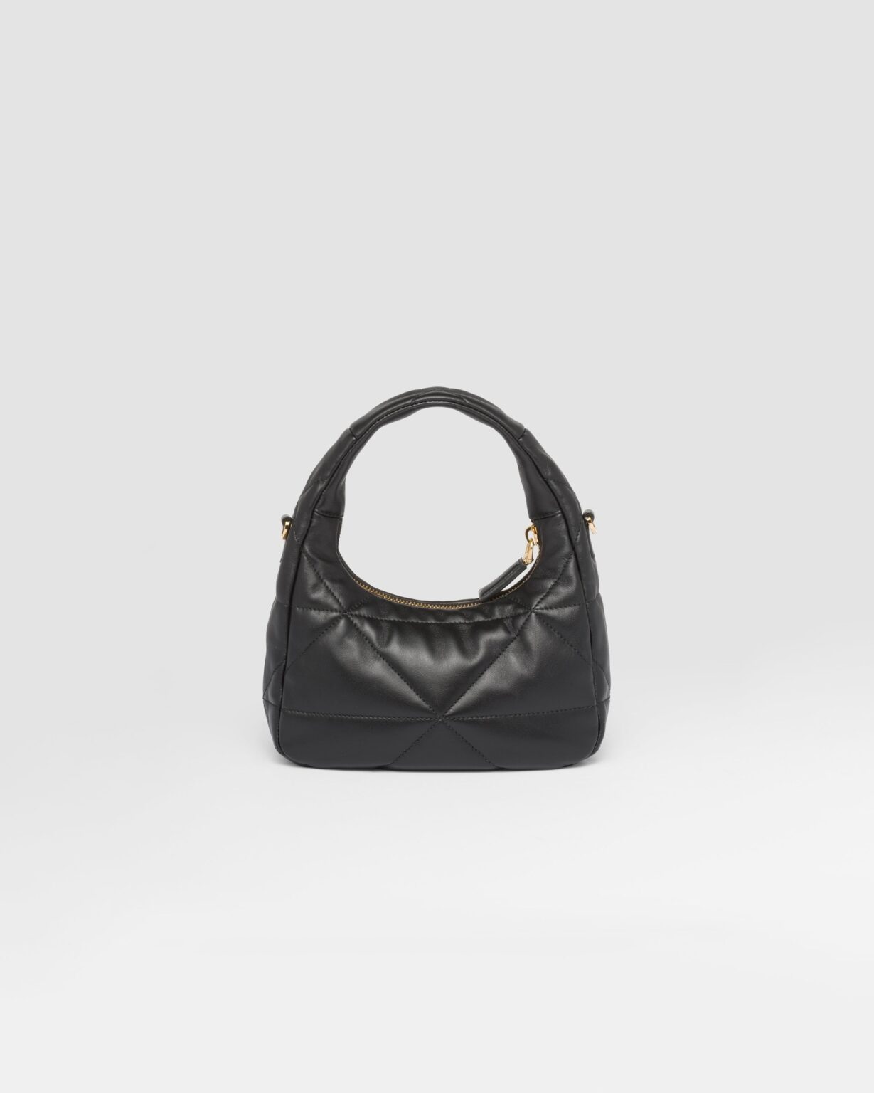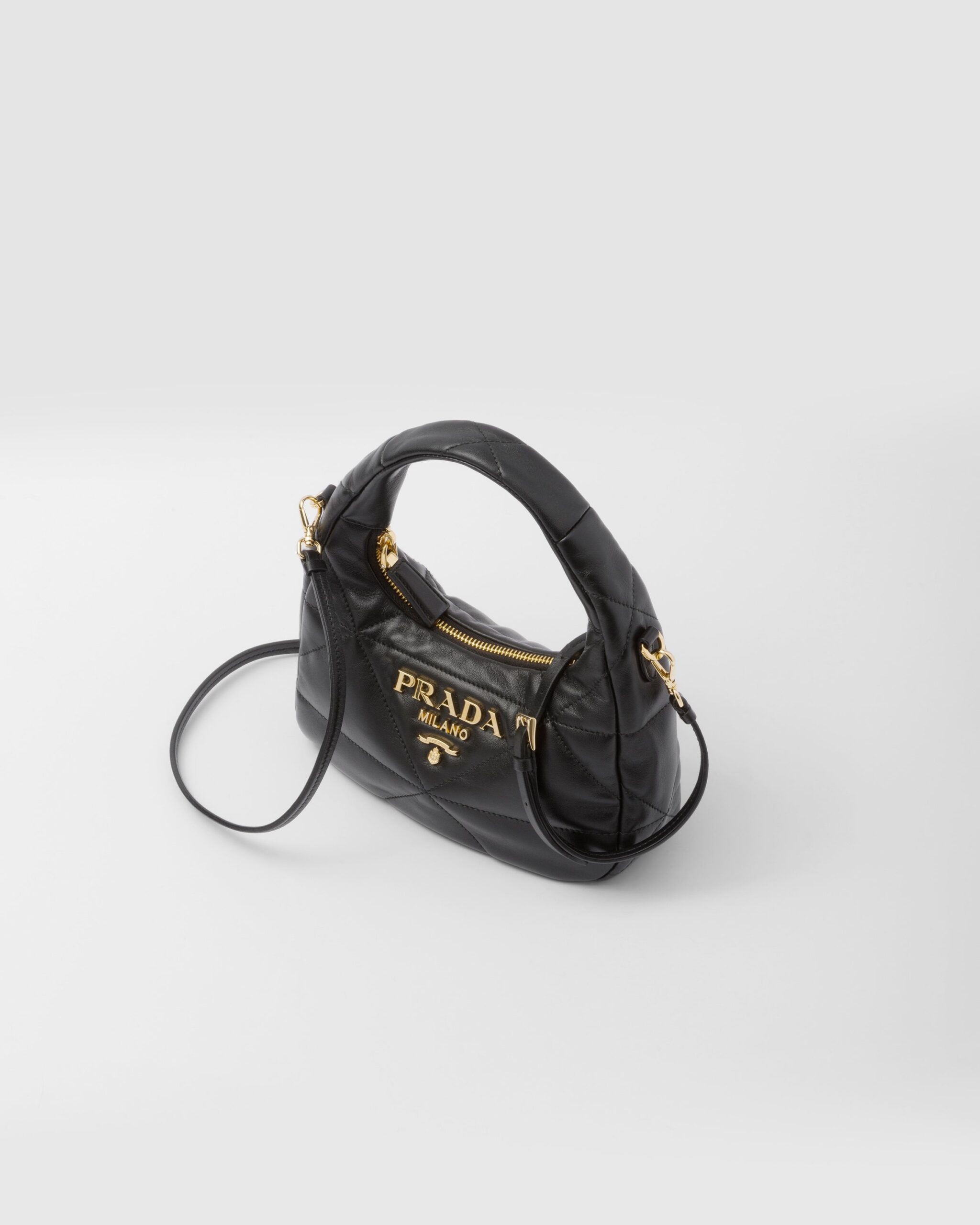 プラダを象徴するモチーフを再解釈した斬新なトライアングルが立体的な効果を生み出す、ナッパレザー(羊革)のミニバッグ。多彩な魅力を放つアイテム。ファスナー開閉式、シグネチャーのエナメルメタルのトライアングルロゴがあしらわれています。